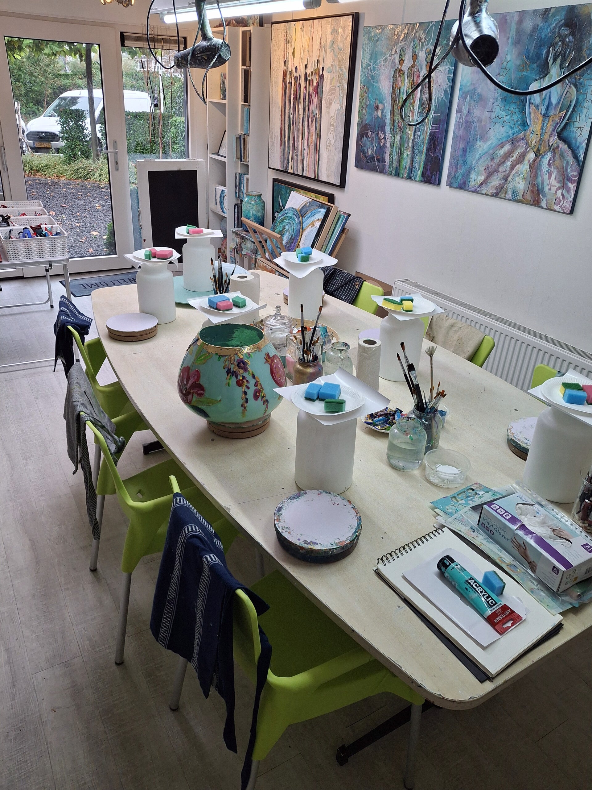 Creatieve workshops zoals mixed media, Powertex, schilderen en decoreren