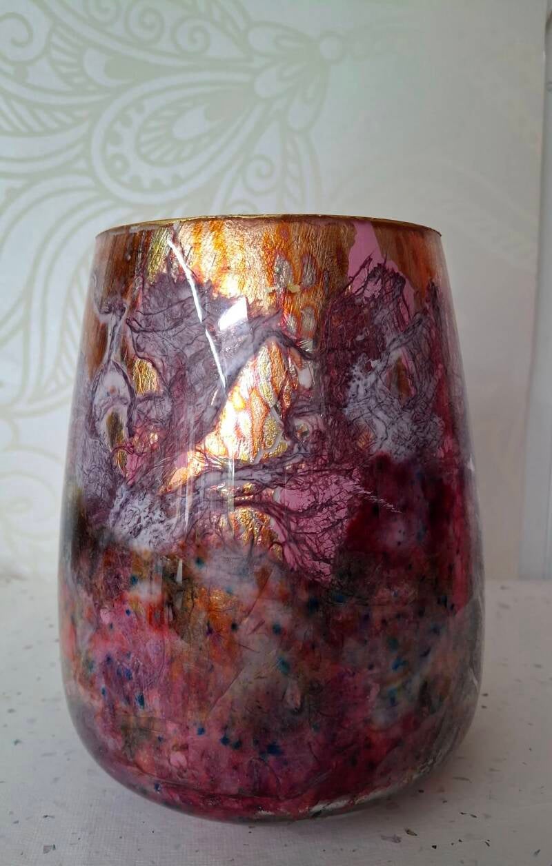 Daarnaast heb je zelf: Glazen vaas in het e-Book staat welke ik heb gebruikt, acryl, lijm (Modpodge), schaar, lijmkwast, plastic, handschoenen, eventueel fohn en schort.