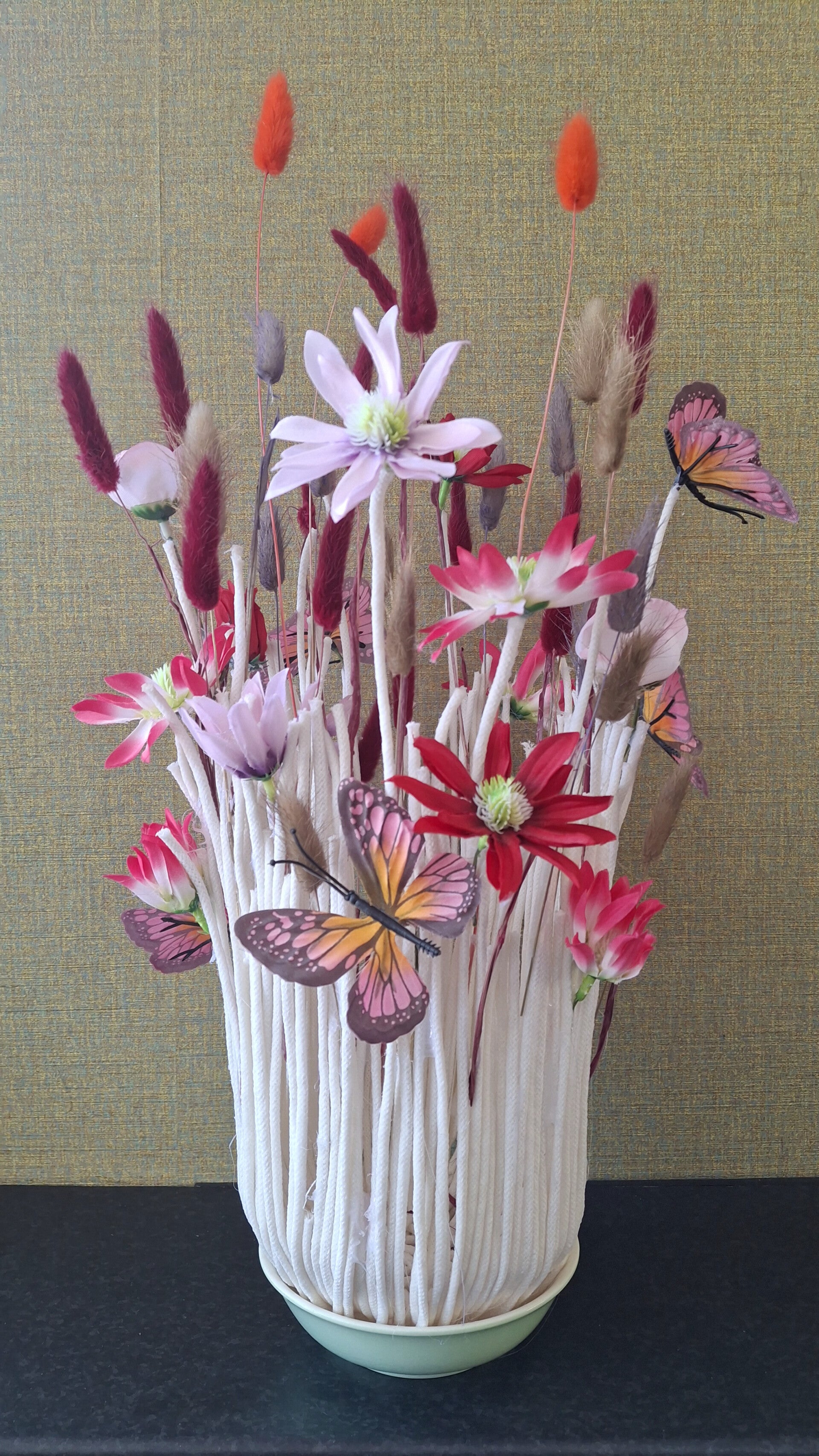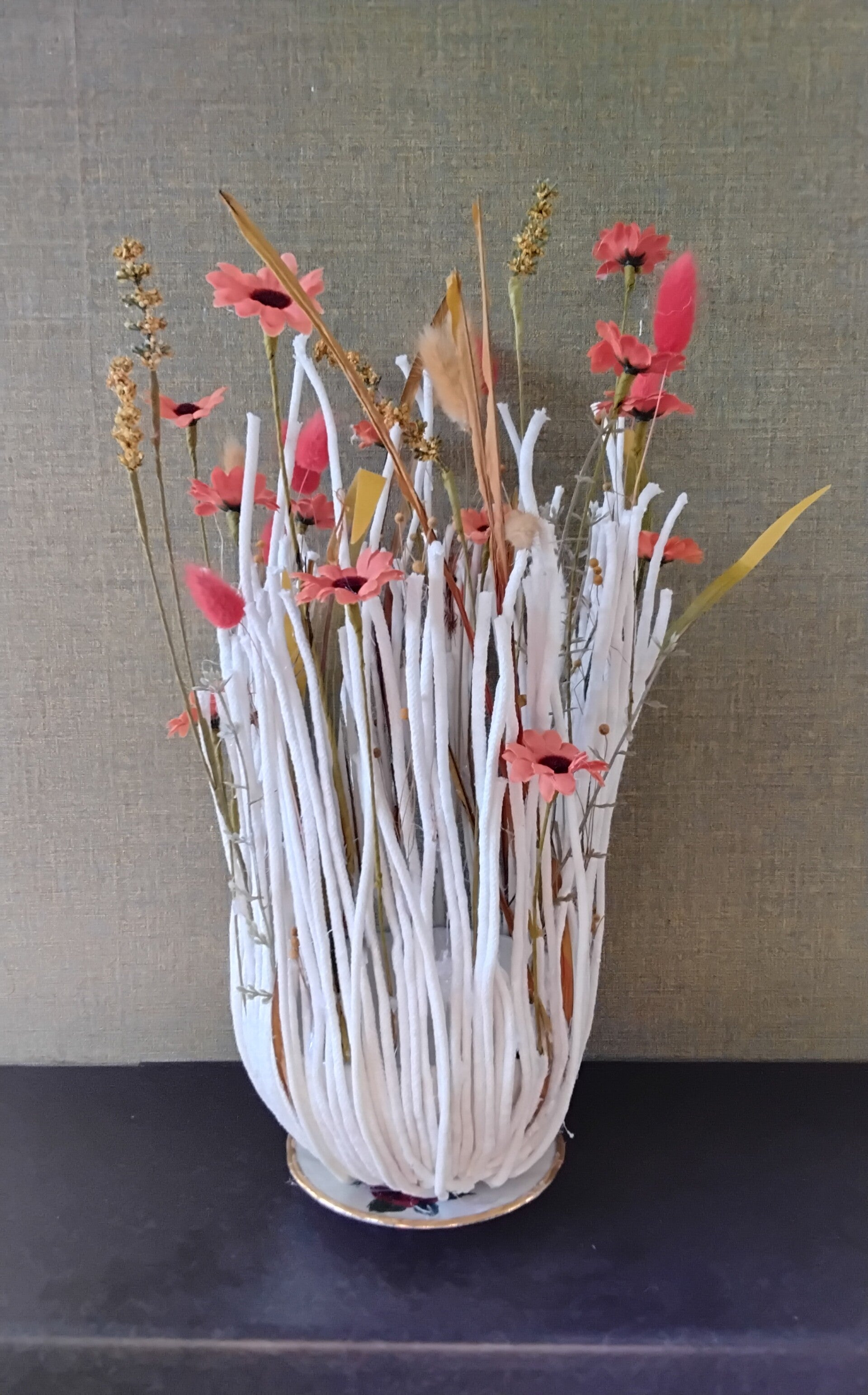 Maak jouw eigen unieke designvaas van ca. 50 cm hoog – een echte eyecatcher vol structuur en speelse bloemen.